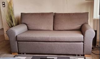 Vend canapé convertible 3 places gris avec pieds en bois Largeur 185 cm, profondeur 90 cm, hauteur 95 cm Longueur de la surface de couchage 204 cm Largeur de la surface de couch