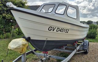 Orkney 590tt, équipé d'un moteur Suzuki 60cv. Longueur de 5,87 mètres et largeur de 2,08 mètres. Année 2007. Prêt à naviguer. L'état est impeccable!! La résine du fond intérieur es