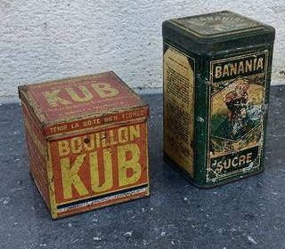 le lot de 2 boites de collection BANANIA ( série bleue ) et bouillon KUB dans leurs patine du temps; (voir photos) prix: 30€ + frais d'envoi