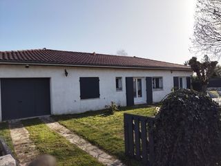 Maison plein pieds, 4 pièces situé centre bourg, proche écoles et commerces. Salon salle à manger avec poêle à bois et climatisation. Chauffage électrique ou poêle à bois. Cuisi