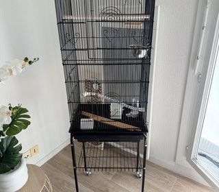 Cage paraît sûrement neuf servis même pas 1 mois elle comporte perchoirs, balançoire, 4 mangeoires, abreuvoir et plateau détachable L46 l36 H163