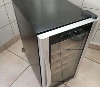 Modèle La Somelière LS18K, dimensions profondeur 50, largeur 35, hauteur 64 cm. Clayettes en bois, votre de porte anti-UV. Très bon état général, une rayure sur le dessus.
