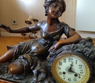 Vends une pendule de cheminée en régule à patine bronze de Louis et François Moreau datant du XIXème siècle, avec ses deux urnes assorties. Pendule intitulée "Les Tourterelles".
