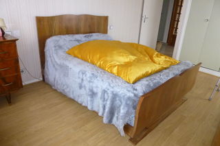Vends un cadre de lit des années 1940 en bois, en très bon état. Belle ligne. Convient pour un matelas standard 140 * 190 cm et n'importe quel sommier. Dimensions: Largeur 150 c