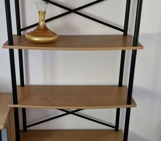 Vends bibliothéque en bois et métal avec 5 etagéres. Pour salon ou bureau. Marque BUT en bon ètat Démontable