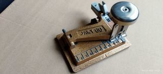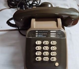 Téléphone ancien à touches Socotel marron et kaki en très bon état.