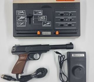 Bonjour, nous mettons en vente cette console Megavox Smash vendue d'occasion avec 1 manette et 1 pistolet (manque 1 cache au dos de la console et 1 cache au dos de la manette). Ét