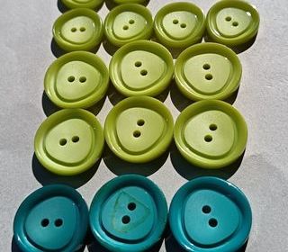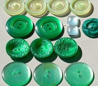 Lot 15 Boutons Couture Vintage - N°62 9 Triangles Émeraude & 6 Turquoises Striés Ensemble graphique et coloré pour vos projets de couture. Ce lot propose des formes orig