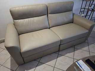 Canapé 3 places relax électrique en cuir beige en bonne etat