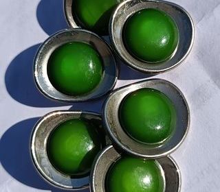 Lot 7 Boutons couture Vintage =2 Fleurs Relief Or/Vert (2,5 cm) et 5 Dômes Émeraude (1,5 cm) - N°59 Un ensemble raffiné pour sublimer une veste, un gilet ou une création artis