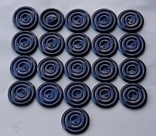 Rare à trouver en un seul lot : superbe lot homogène de 21 boutons ronds vintage, coloris bleu marine profond. N°91 Quantité : 21 pièces identiques. Diamètre : 2,5 cm (25 m