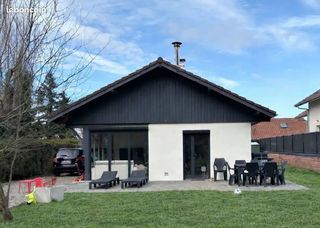 Située dans un quartier résidentiel très calme, maison individuelle de plain-pied de 106 m² habitables sur 600 m² de terrain. L'espace de vie, lumineux et spacieux (58 m²), comp