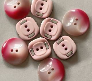 Rare Série longue de 12 Boutons Carrés Vieux Rose - 2,5 cm - N°8 - Lot homogène de 12 boutons de forme carrée, coloris vieux rose. Un design rétro et raffiné, idéal pour appo