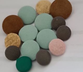 Lot 16 Boutons Couture Recouverts Tissu ? Vintage ? Marquages Expedit Paris & Astor - LOT N°32 Superbe lot de 16 boutons anciens recouverts de tissu, pépites de mercerie traditi