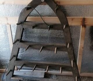 Très jolie armoire bressane XIX s , éléments décoratifs typiques : feuille d'eau au sommet de l'armoire et marguerite sous le tiroir. Autre élément caractéristique du meuble bressa