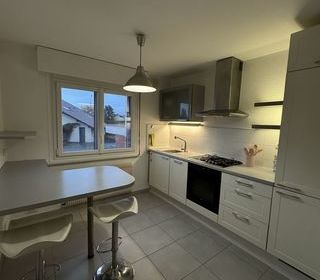 Joli appartement de 3 pièces avec une grande terrasse, cuisine ouverte, 2 chambres à coucher, salle de bain avec baignoire, WC séparé en plus, garage fermé au sous-sol, accès depui