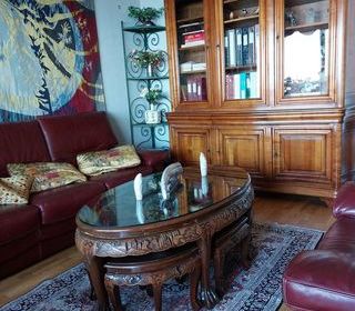 Je m'en sépare,car mon départ en maison de retraite est proche (Table ronde,avec une rallonge,la transformant en ovale et ses 6 chaises),recouvertes de tissu,bon état