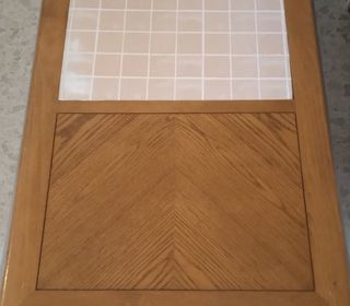 table basse en bon etat longueur 1200 x largeur 600 x haut 380 .le milieu etait en verre fumé à l'origine. remplacé par une plaque bois