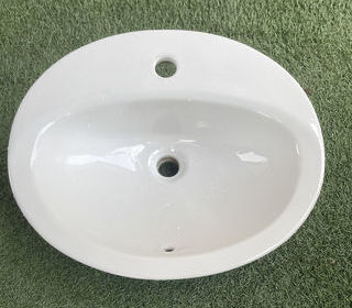 Vasque de forme ovale, occasion en parfait état sans éclats, ni fêlures ni ébréchures. Dimensions : longueur 53cm, largeur 44cm, hauteur 20cm visible et enlèvement sur Baillargu