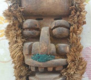 Masque Africain ramené du Gabon il y a environ 45 ans Hauteur 35 centimètres x largeur 25 centimètres x épaisseur 10 centimètres Poids est de 950 grammes Il est fait en bois scu
