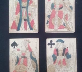Je vends ce lot de 5 cartes à jouer anciennes datant du XVIIIe et XIXe siècles. - Type de produit : Jeux de cartes anciens - Époque : XVIIIe-XIXe siècles - Composition du lot :