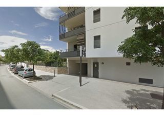 Garage spacieux de 20 m2 au 1er sous sol résidence récente 200, Rambla des Calissons, sécurisé par portail métallique télécommandé et par box fermé. Point lumineux et prise de cour