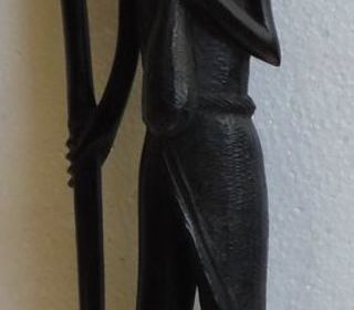 Statuette Africaine en ébène représentant un guerrier avec sa lance en ébène Hauteur 43 centimètres Largeur (tête) 10 centimètres Epaisseur 6 centimètres Poids 650 grammes En