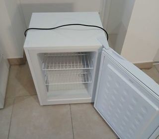 petit Réfrigérateur blanc porte sur le côté droit avec deux étagère en très bon état