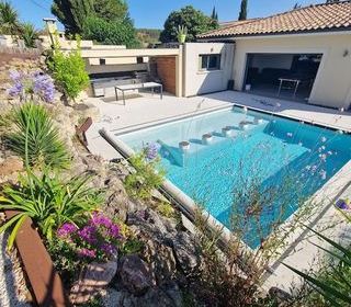 Cause départ à l'étranger, cette maison contemporaine de 2017 aux prestations haut de gamme est proposée à la vente dans un environnement privilégié. Dès l'entrée, la pièce de v