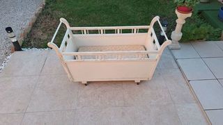 Vends lit bébé en bois massif ancien avec matelas. Dimensions: L:120 cm x l:58 cm.