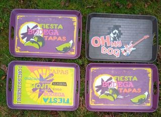 dimension 36 x 41 cm - 3 plateaux thème espagnol tapas fiesta bodega : 15€ - 1 plateau thème anglais : 5€ (stock garage) Remise en main propre possible sur Paris A LIRE : 9525