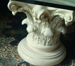 Reproduction de Chapiteau de colonne en plâtre dans le style Corinthien ( réalisé par un artisan ) deux pièces disponible .Dimensions 47 cm de haut ; pour la partie plate en haut