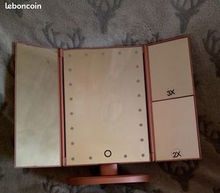 miroir Hollywood de la marque Easehold alimentation par câble USB ou piles 2 petits miroirs pour grossissement x2 et x3 bouton tactile marche/arrêt sur le miroir Remise en main
