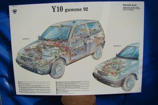Ancien panneau " Affiche " LANCIA Y10 gamme 92 Panneau recto / verso présentant l'Autobianchi / Lancia Y10 Fiat Auto S.p.A. Il ne s'agit pas à proprement parler d'une affiche