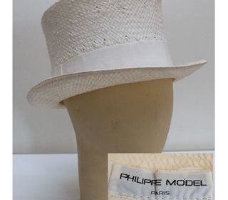 Chapeau Haut de Forme paille blanche PHILIPPE MODEL vintage 90 Tour de tête 57 cm hauteur 14 cm porté 1 fois Envoi possible RMP Paris métro Corentin Celton