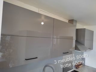 Je vends cette cuisine Mobalpa en bois, composée de plusieurs meubles de rangement, l'évier d'angle en granit, ainsi que le combiné réfrigérateur/congélateur Sauter. - Type de pr