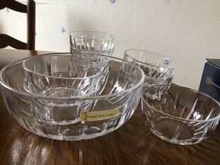 Service à dessert comportant un saladier et 8 coupelles en cristal taillé Excellent état