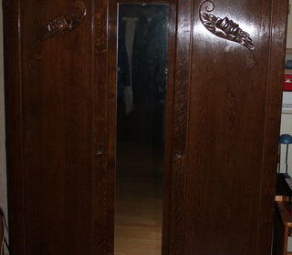 Armoire 2 portes avec une glace au milieu. Un côté penderie et un coté étagère.