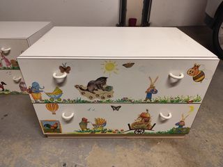 Tiroirs d'aménagement pour chambre enfant décoré avec ( lapins , abeille , canard, éléphant , cheval , mouton , hérisson , coq , oie , vache, ours papillon , chat , soleil coccinel
