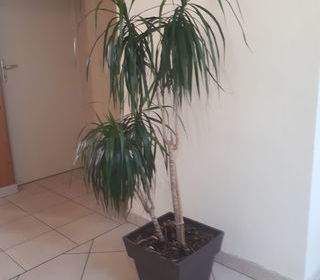 Dragonnier en pot marron, en très bon état, grande taille. Pot marron foncé 33 cm x 33 cm x 33 cm Hauteur totale pot + plante : environ 145 cm Plante saine, entretien facile.