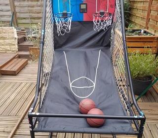Jeu de basket électronique 8 variantes de jeux différents 2 balles dim : H : 160 (1) H : 75 (2) l :77 L :115 peut être utilisé en extérieur ou en intérieur bon état général