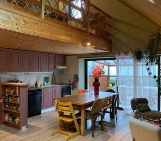 Cet appartement est composé - 1er niveau : une entrée avec espace de rangement, 2 chambres, un séjour avec cuisine ouverte donnant sur une belle véranda d'été, une salle d'eau et