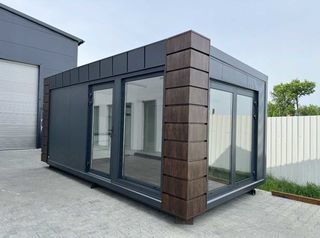 Structure en acier €" profilé 100/50/3 + garde-corps HDS/grue Panneau sandwich PIR (murs et plafond 10 cm, sol 12 cm) Toiture monocouche avec une pente de 10 cm Fenêtre fixe 120à-2