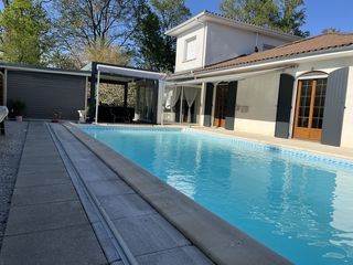 maison landaise avec 2650 m2 de terrain, pas de mitoyenneté, zone naturelle ; proche accès lac ; piscine au sel 10 m X 5 m 5 places couvertes pour véhicule ; entrée indépendante a
