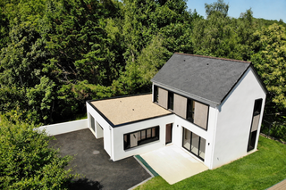 Située dans un véritable écrin de verdure à seulement 600 mètres de la place de l'Église à Ploemeur et 300 m de l'étang du TER, cette maison d'architecte neuve de 132.6 m² habitabl