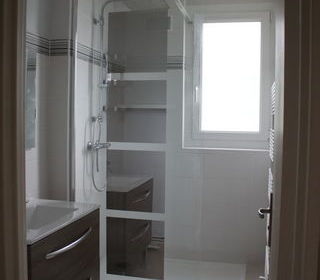 Warcq centre , au 3 -ème étages appartement rénové T2 de 30 m carre dans petit immeuble ,il comprend une pièce de vie de 17 m carre avec une cuisine équipée , avec sa vaisselles ,