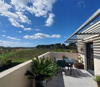 Appartement idéalement situé dans le quartier dynamique des Grisettes, donnant sur L'Agriparc du Mas Nouguier, avec vue dégagée sur vignes se prolongeant jusqu'aux Cévennes. Vous b