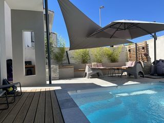 Très belle maison entièrement rénovée en 2025 de 110m2 sur une parcelle de 184m2 située aux Métairies à Sète dans un quartier calme au fond d'un cul de sac. On entre dans la prop