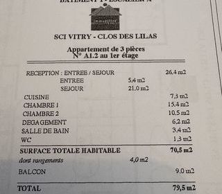 Particulier à particulier .Appartement F3 de 70m2 + balcon 9 m2 dans une résidence de 2009 calme et très bien entretenu. 1 er étage sur 3 ,à proximité du parc des lilas . Cuisine