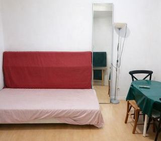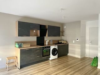 Belle chambre équipée avec les éléments de cuisine tels Multicuiseur, Microonde-grill, frigo-congèle, placards.. etc. Lavabo dans la pièce. Grande fenêtre. Un grand lit, chauffage